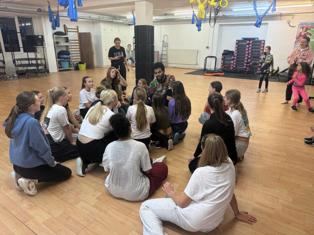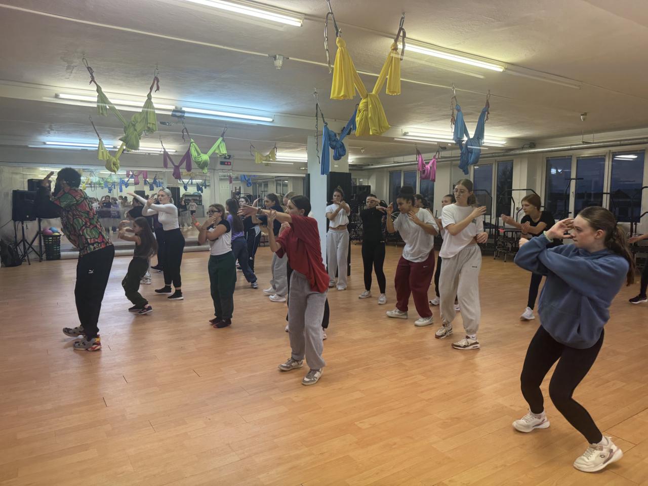Večer nechybělo ani protažení a styl Conterporary a junioři i přespali ve studiu a učili se novou choreografii na soutěže roku 2025. Workshop nám všem přinesl nové znalosti a nové využití naučených kroků. Přespání bylo v rámci "team buildingu", aby se všechny děti lépe poznaly.
