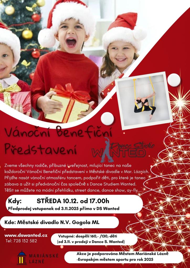 VANOČNÍ BENEFIČNÍ PŘEDSTAVENÍ Dne 10. prosince 2025 se v divadle N.V. Gogola v Mariánských Lázních koná VANOČNÍ BENEFIČNÍ PŘEDSTAVENÍ.